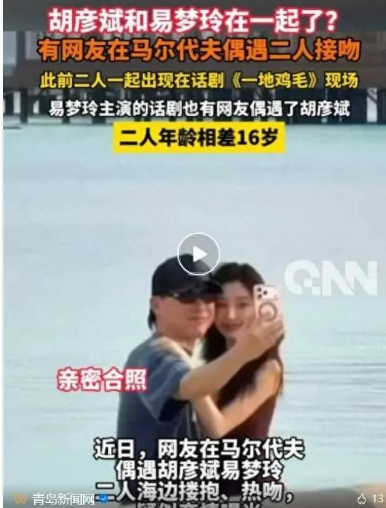 网友拍到胡彦斌易梦玲海边拥吻、自拍,二人相�岁
